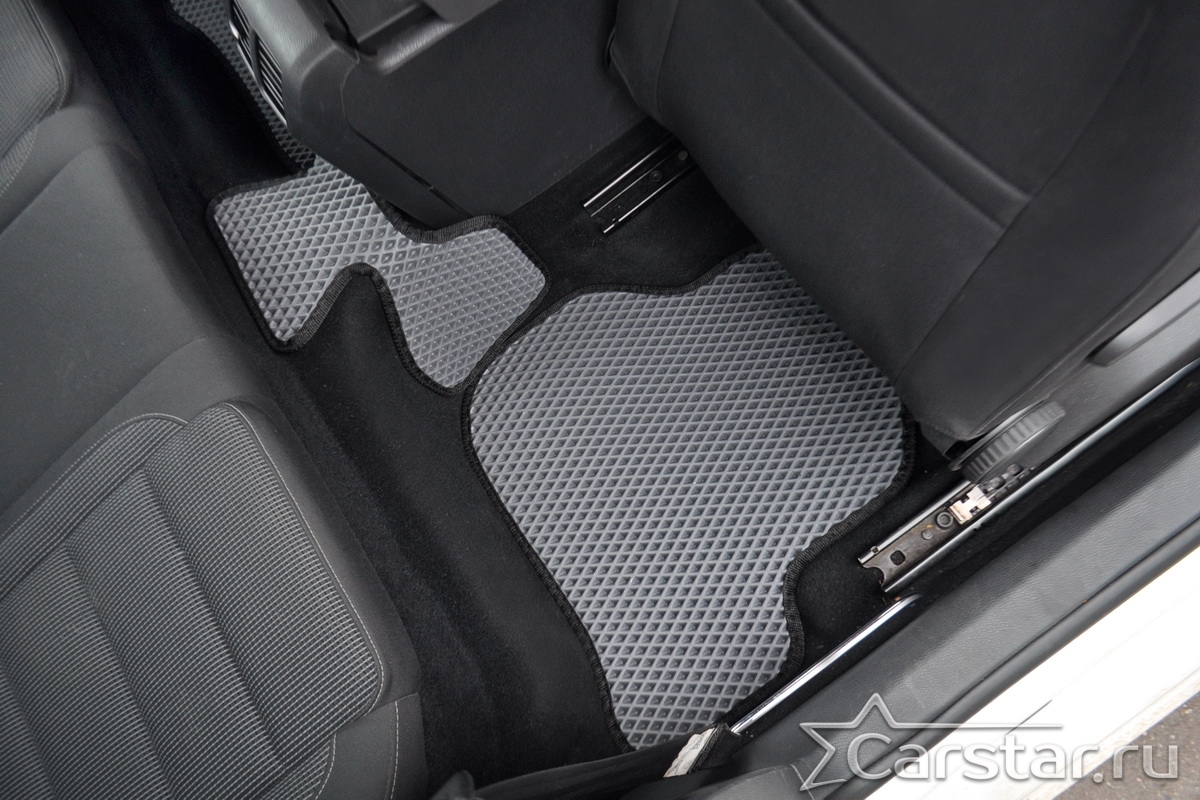 Толщина ковриков EVA составляет 10-12 мм. Глубина ячеек 7-8 мм. Такая толщина ковриков позволяет им служить довольно долго, не протираясь до 3 лет. А благодаря такой глубине ячеек коврик EVA площадью 1 кв.м. способен захватить около 3,5 л жидкости, сохраняя в чистоте вашу обувь и обивку салона.